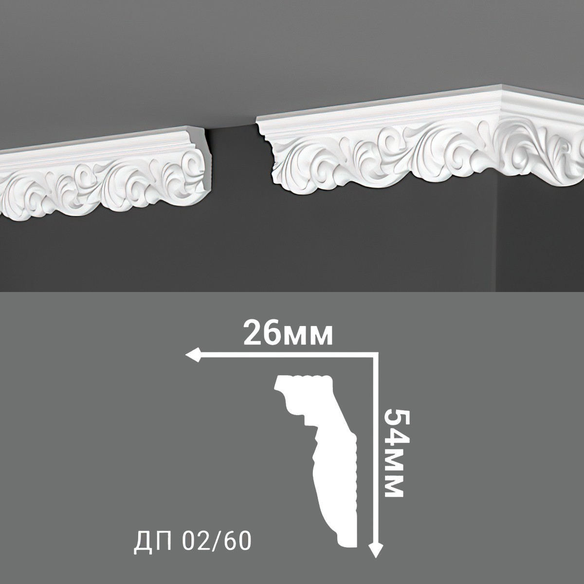 00-00001063 Плинтус потолочный Де-Багет ДП02/60 (2000*54*26 мм)