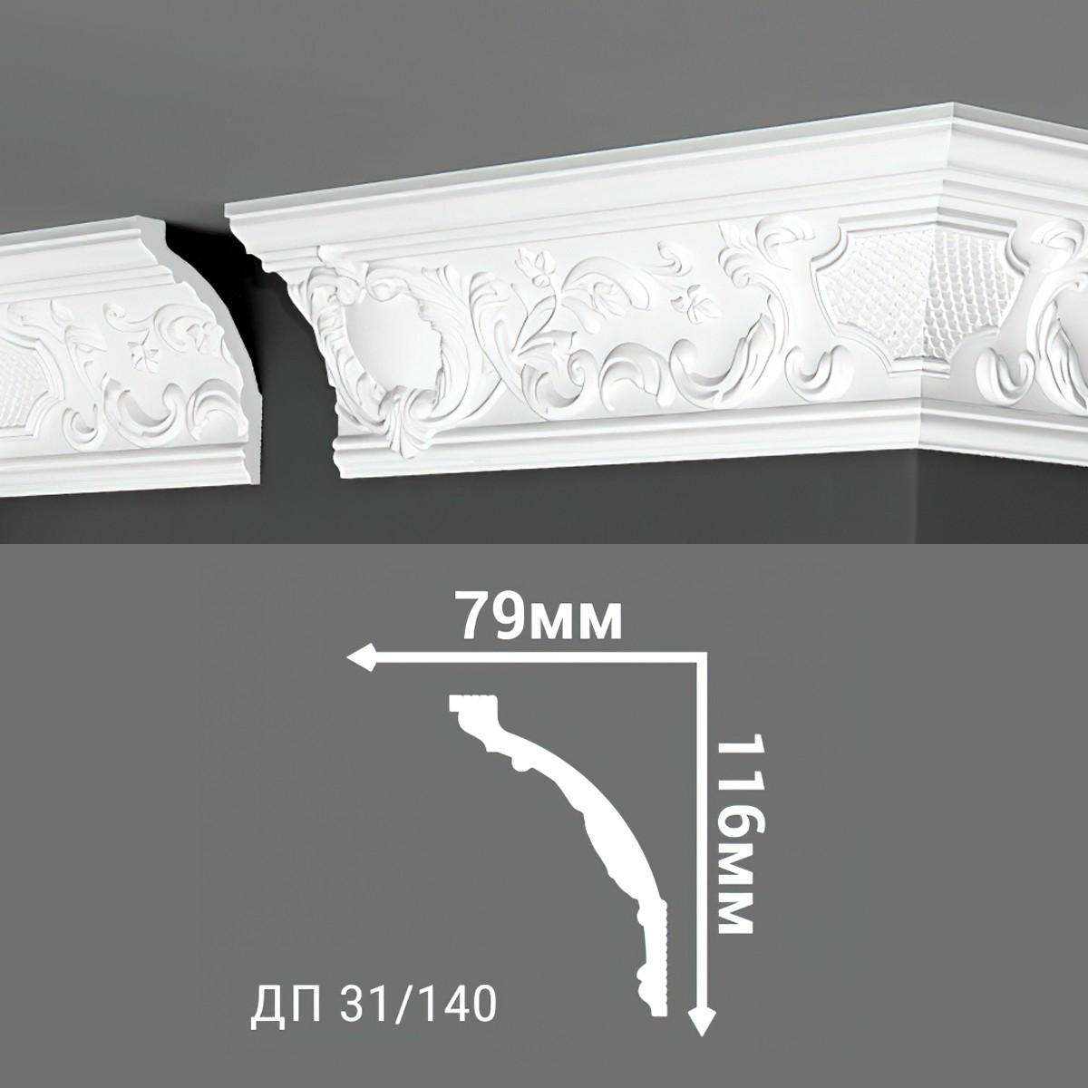 00-00001089 Плинтус потолочный Де-Багет ДП31/140 (2000*116*79 мм)