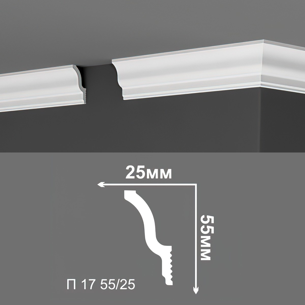 00000002866 Плинтус потолочный Де-Багет П17-55/25 (2000*55*25 мм)